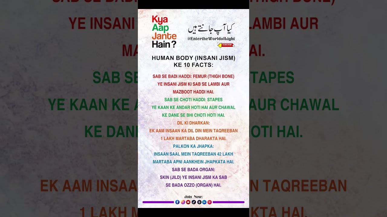 #islamic #trending #shorts #viralvideo #knowledge Welcome to π― EntertheWorldofLight π Did You Know? | duniya mein kitni amazing aur mind-blowing baatein chhupi hui hain? Is channel par aapko milenge interesting facts, unknown facts, aur daily knowledge** jo aapki soch badal denge! Yahan hum laate hain: ✔ Amazing Facts ✔ Mind-Blowing Information ✔ General Knowledge ✔ Viral & Trending Facts ✔ Educational Videos in Urdu/Hindi Agar aapko kya aap jaante hain, interesting facts , aur knowledge videos pasand hain, to yeh channel aapke liye perfect hai! π Subscribe karein EntertheWorldofLight ko** aur har roz naye facts aur knowledge videos dekhein. π Bell icon zaroor press karein taake aap koi bhi new video miss na karein! “ Like π Comment π¬ Subscribe π " ------ Join us : YouTube : π /@HolidaysShoppingDay Instagram : π /holidayshoppingday2024 π /entertheworldoflight Facebook : π /holidayshoppingday π /EntertheWorldofLight TikTok : π /@holidaysshoppingd π /@EntertheWorldofLight ---- Ignore It : kya aap jaante hain amazing facts interesting facts mind blowing facts unknown facts random facts daily facts knowledge for all general knowledge facts in urdu facts in hindi viral facts trending facts shocking facts educational video kya aap jaante hain amazing facts interesting facts in urdu hindi mind blowing facts you didn’t know daily amazing facts for knowledge general knowledge facts in urdu unknown facts about world viral facts 2026 viral facts 2025 2024 educational facts video in urdu top 10 amazing facts in hindi random interesting facts about life